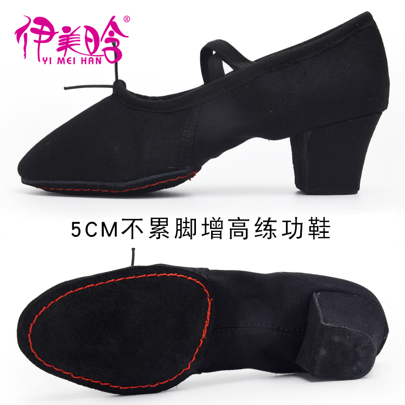 Dance shoes women's soft bottom training shoes high-heeled adults with heels for teachers' special body black ballet shoes belly dance