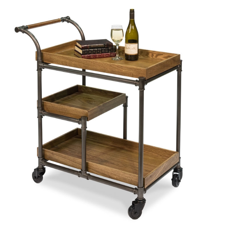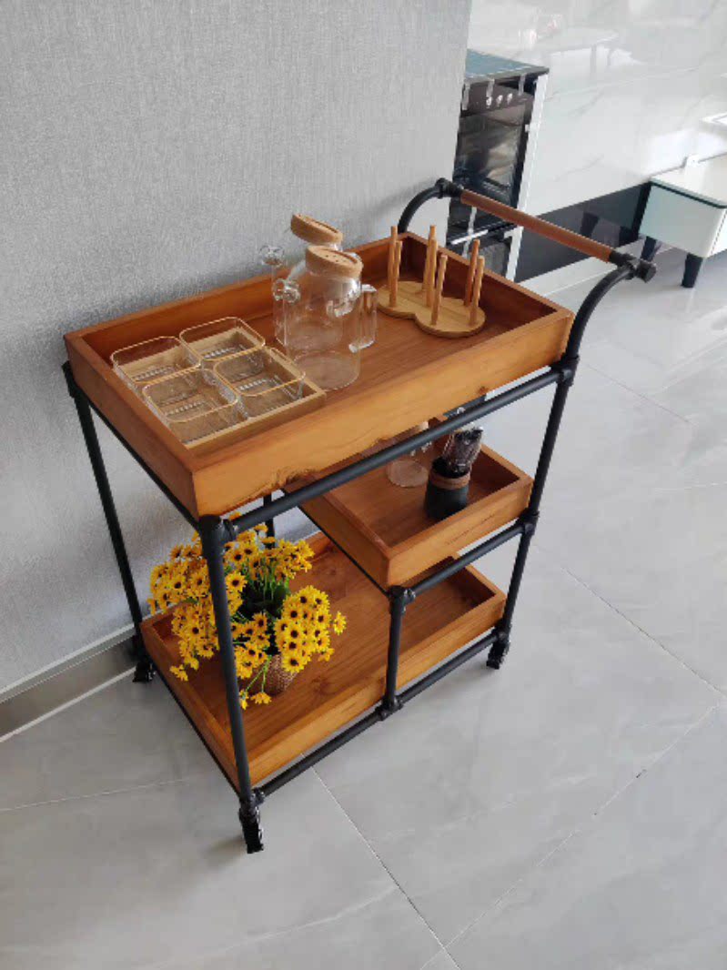 Hotel wine cart restaurant mobile solid wooden push cart creative meal side tea car home retro