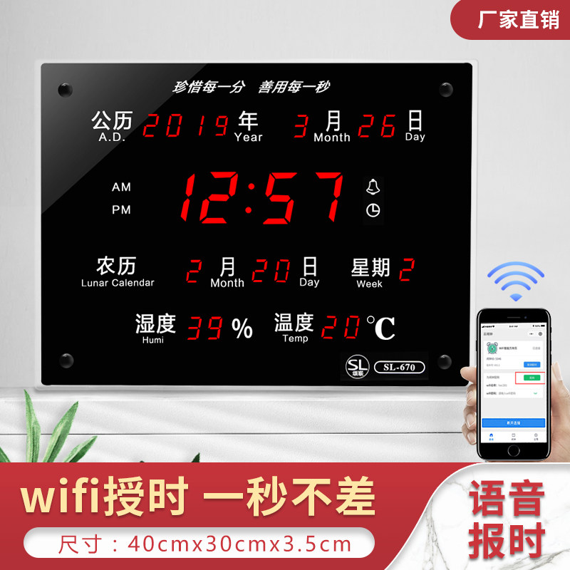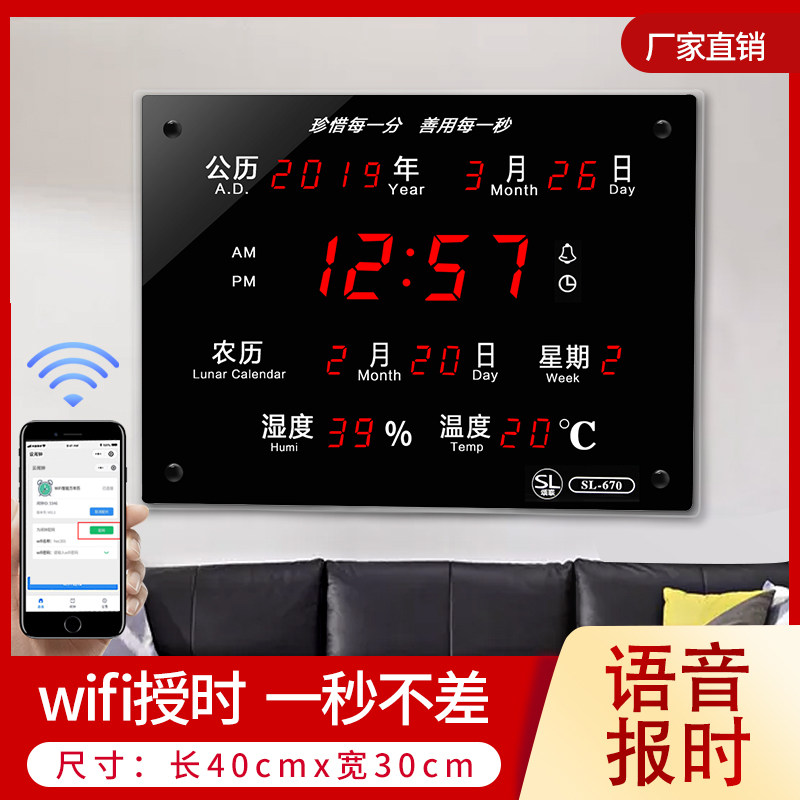 New digital perpetual calendar bedroom living room creative WiFi network timing electronic clock home luminous mute hanging