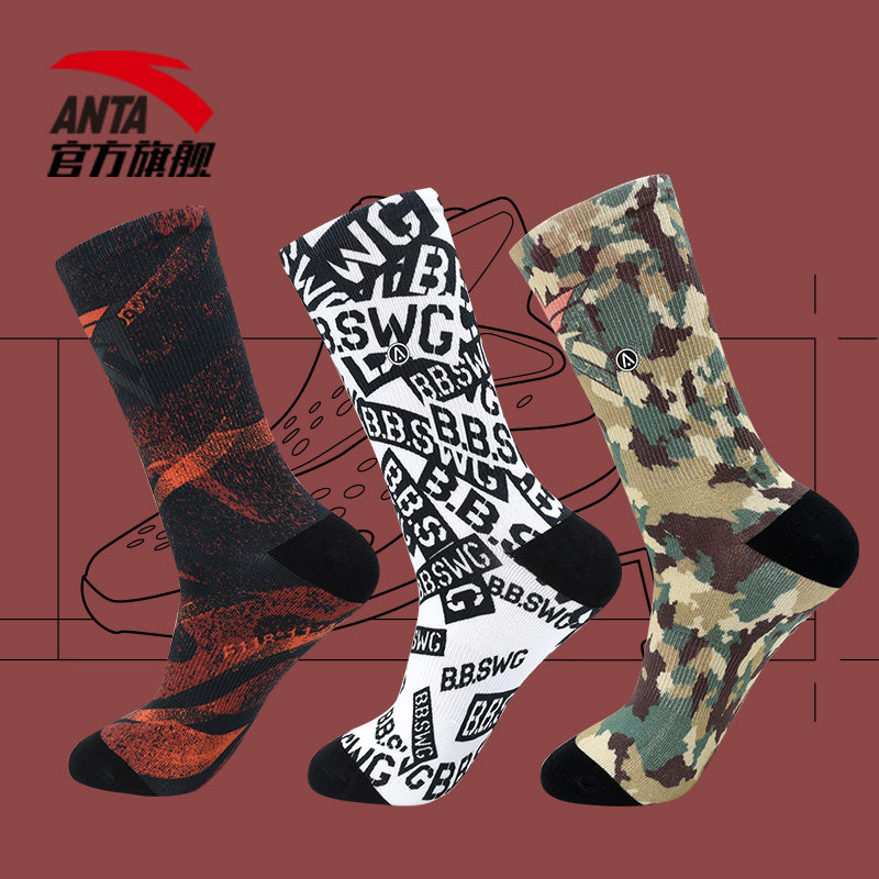 Ann Stepping Basketball Socks Sports Socks Male Socks Official Web 2022 Spring Summer New Thompson Long Silo Socks Breathable Cotton Socks