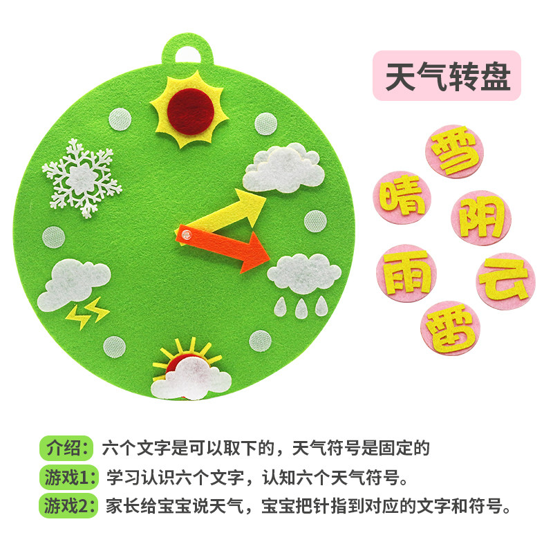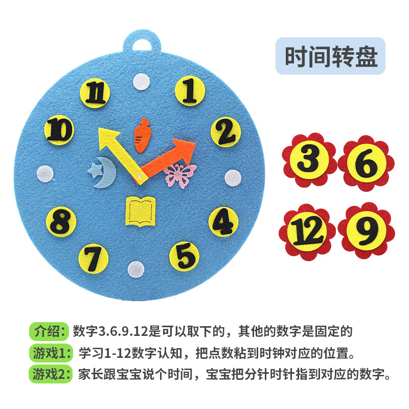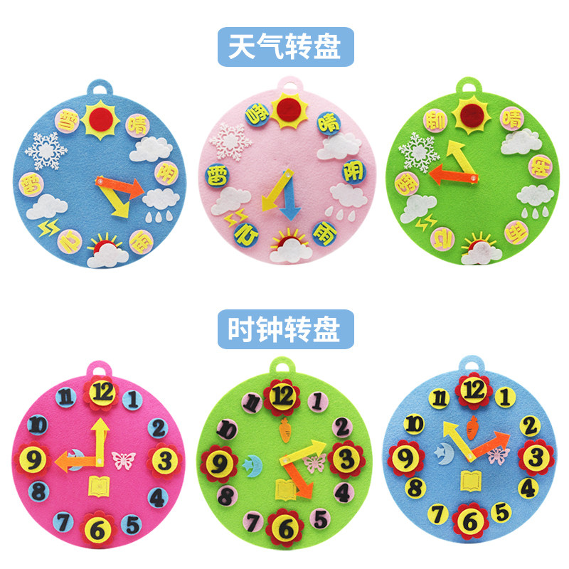 Kindergarten children early education props Montessori Non-Woven Hand diy weather Time Clock Clock