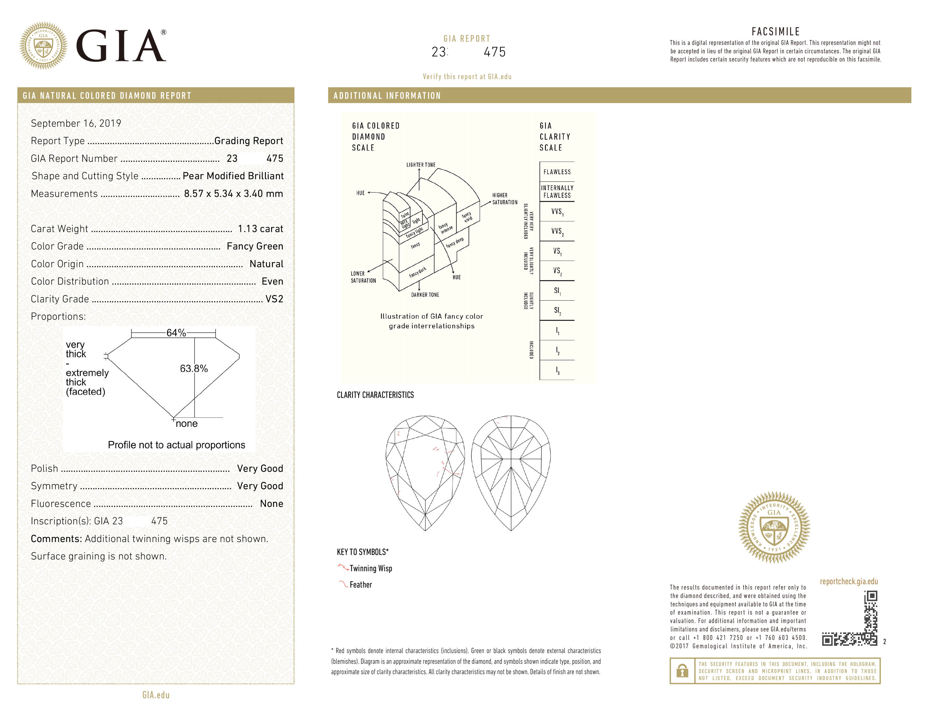 Fancy Green Diamond Drop Shape 1 13-carat FancyGreen Fancy Green VS2 Clarity GIA Certificate