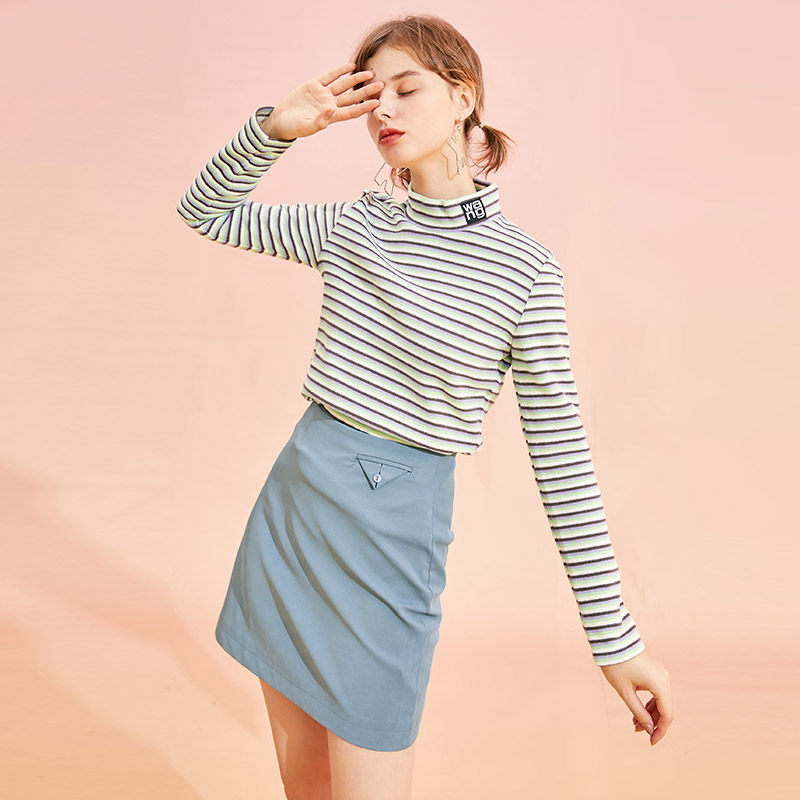 Jamor autumn color striped sweater girl high-collar sweater with long sleeve knitted shirt