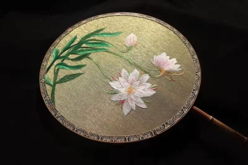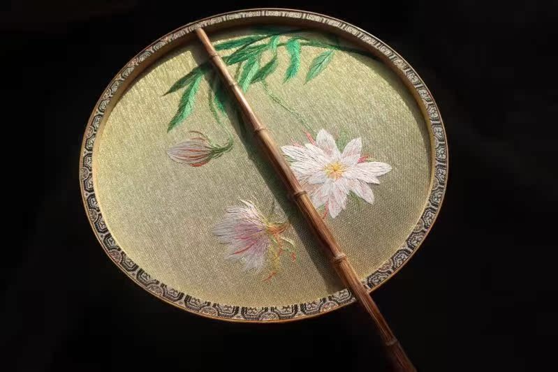 Epiphyllum high-end Suzhou embroidery kesi handmade fan, double-sided handmade fan, go abroad to send foreigners as gifts and custom follow me