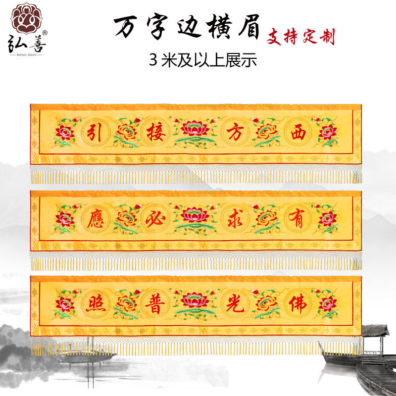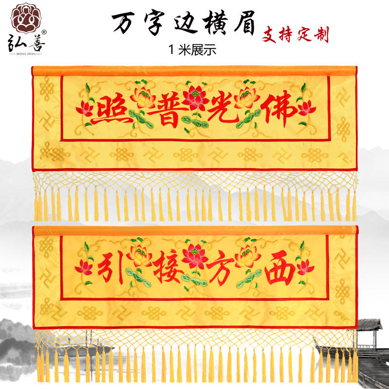 Custom Banner Crossbrow Embroidered Buddha Hall Supplies Lotus Blossom Cloth Crossbrow Brow Brow Brocade Decoration Embroidered Cross Colored
