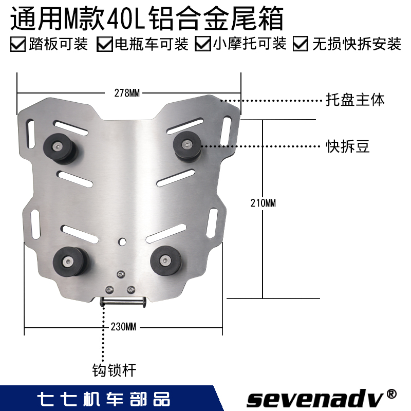 Seven-seven rear end box universal M-type 40L aluminium alloy tailbox pedal electric car small Ferris available without distortion quick-release installation