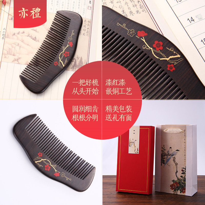Natural Black Sandalwood Comb Lady Special Long Hair Portable Without Shank Fine Teeth Antistatic to comb creative gift sets