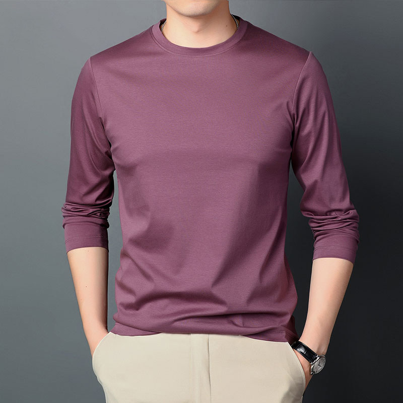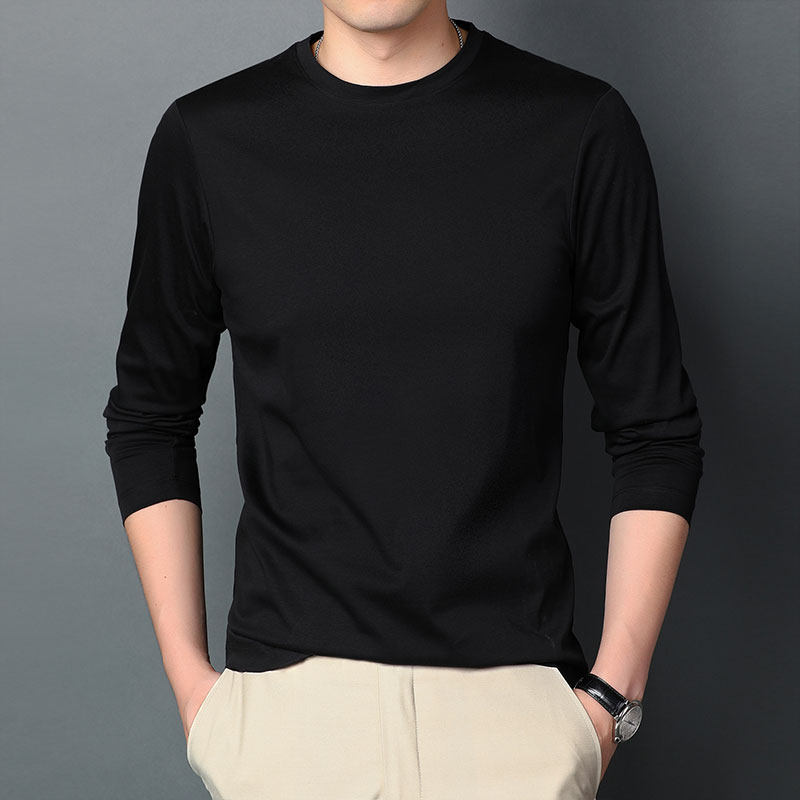 Spring and Autumn Han Edition Round-necked cotton long-sleeved T-shirt men silk cotton-beaten shirt with pure white coat tide