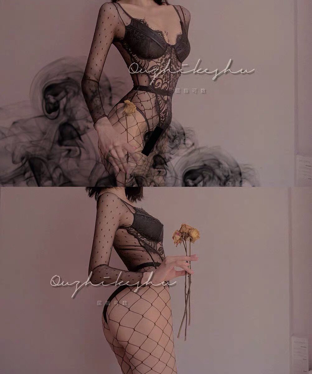 Lab#I cover you* suck up her boyfriend's hot private love sexy black silk big mesh lace sexy pajamas