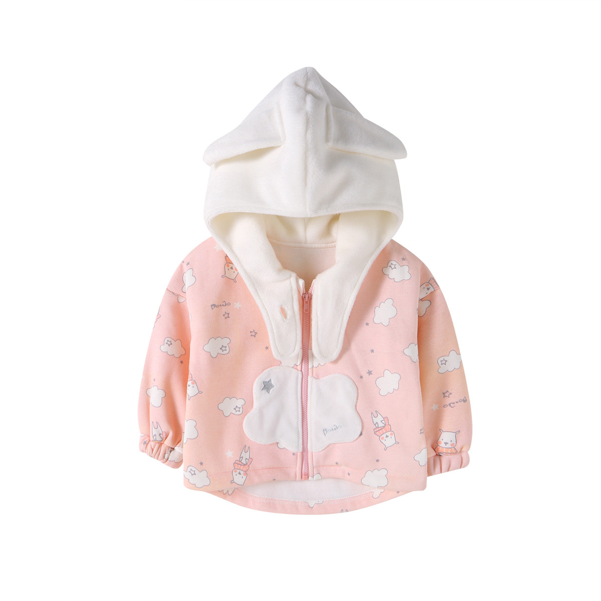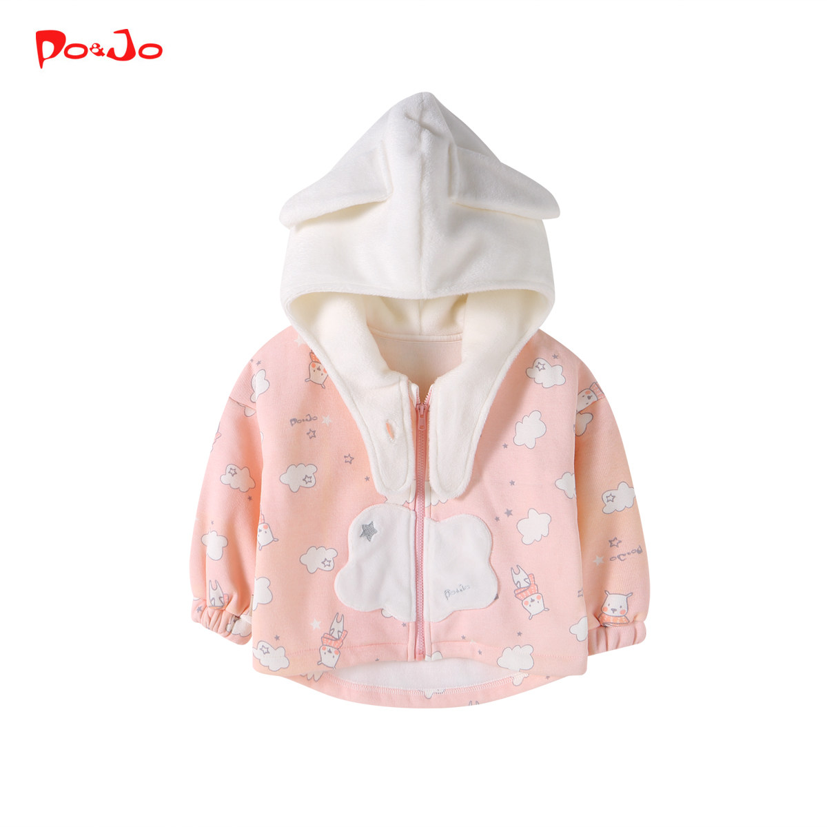 Leather Jo Winter Clothing Baby Baby Girl Children Clothes Blouses Coat jacket Even cap thickened warm and velvety autumn and winter