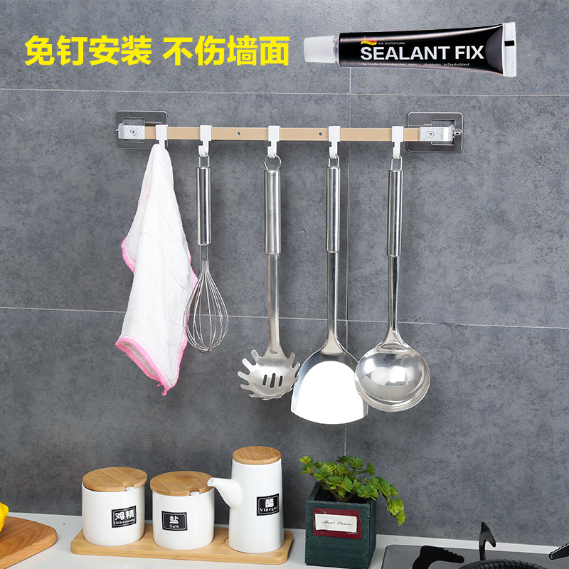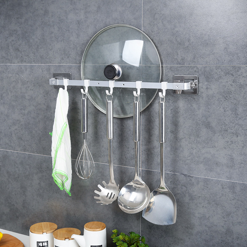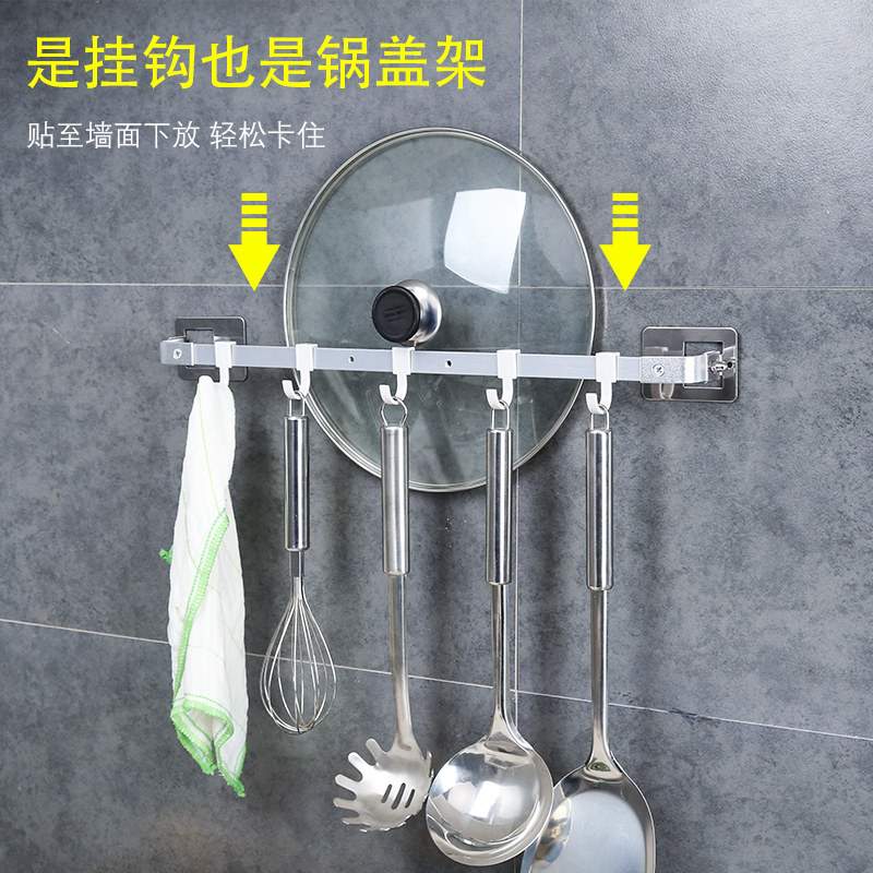 Kitchen household pot cover storage shelf Wall-mounted non-perforated supplies put pot cover rack hook hanging rod hanging rack storage rack