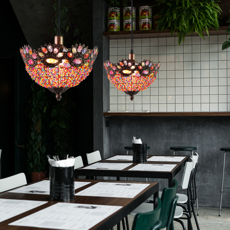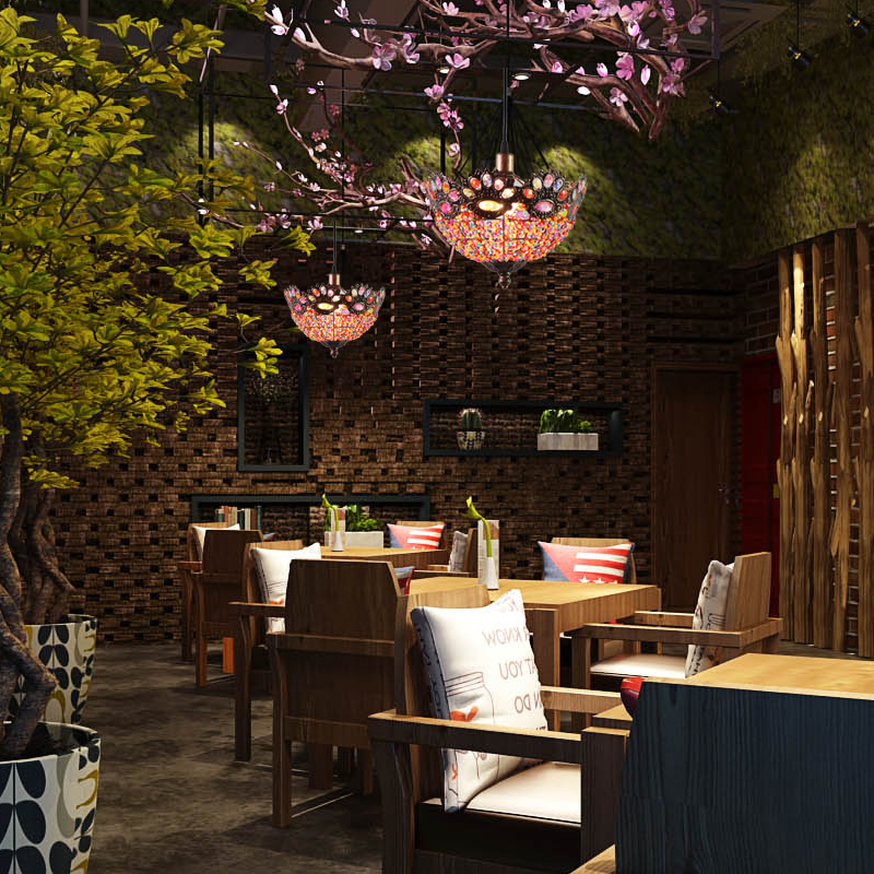 Designer ethnic style chandelier dining room art lamp net red creative milk tea coffee bar table creative personality lamps