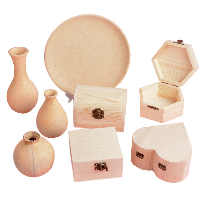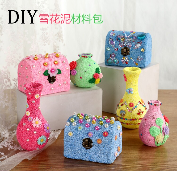 Children's creative DIY snow clay clay Wooden treasure box vase White embryo material production adhesive accessories toys