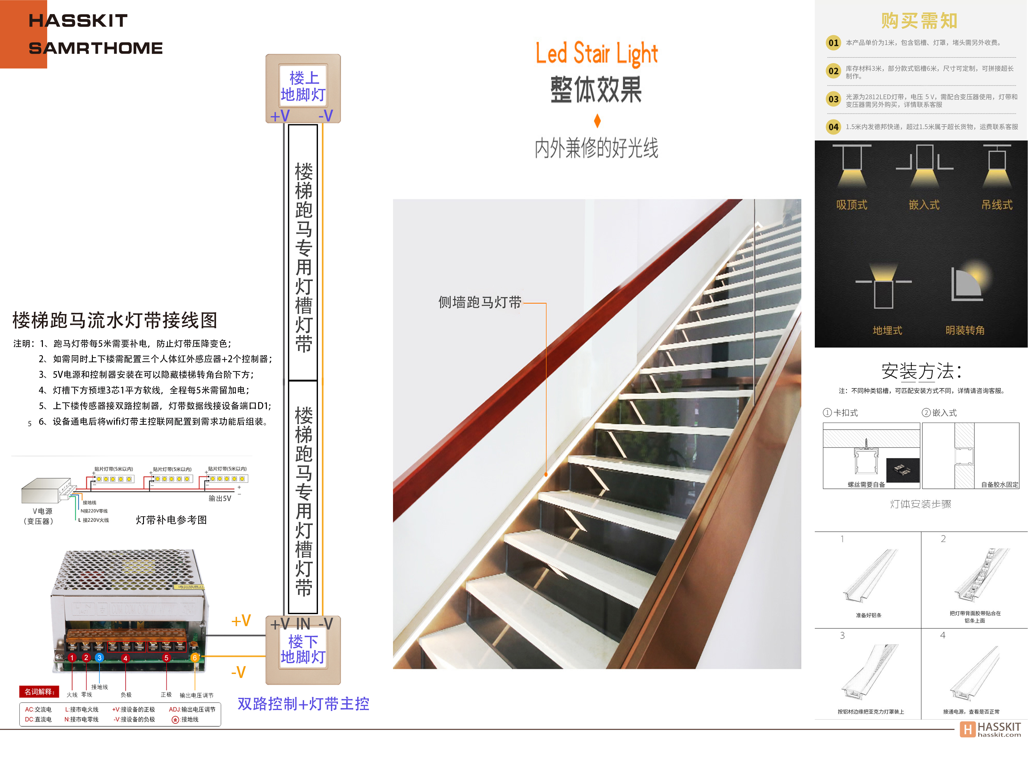 Video atmosphere light with controller set Mijia version 12V60 beads 10 m horse horse stair light with local installation guidance labor cost Rice home version step light with controller 24 section step light with controller set