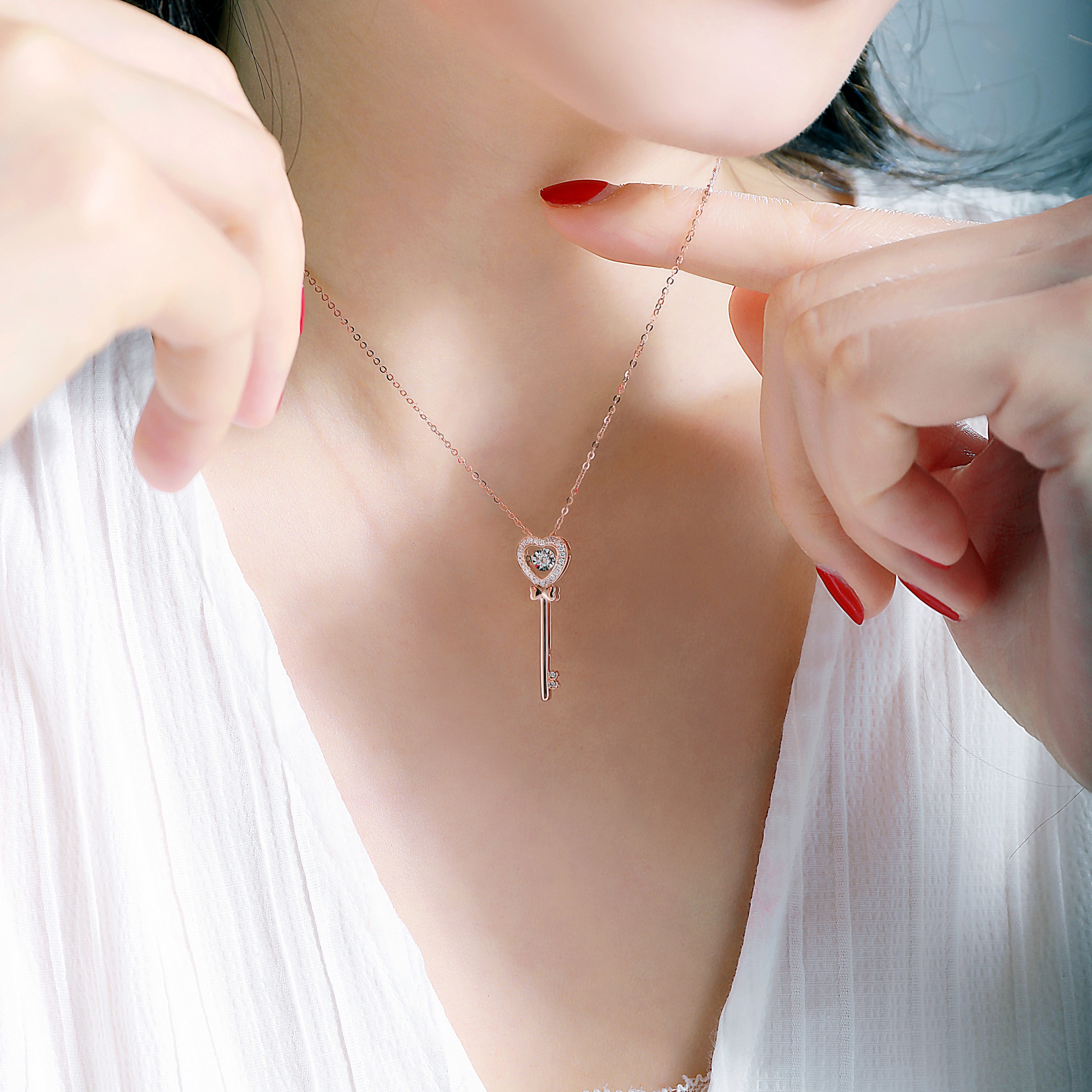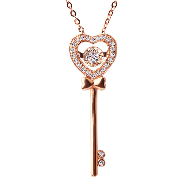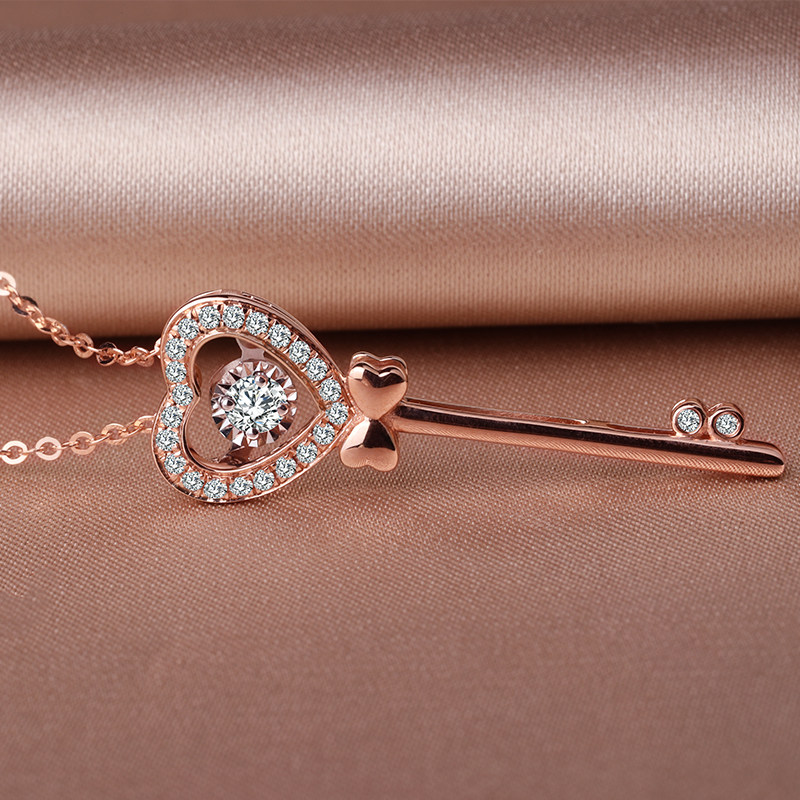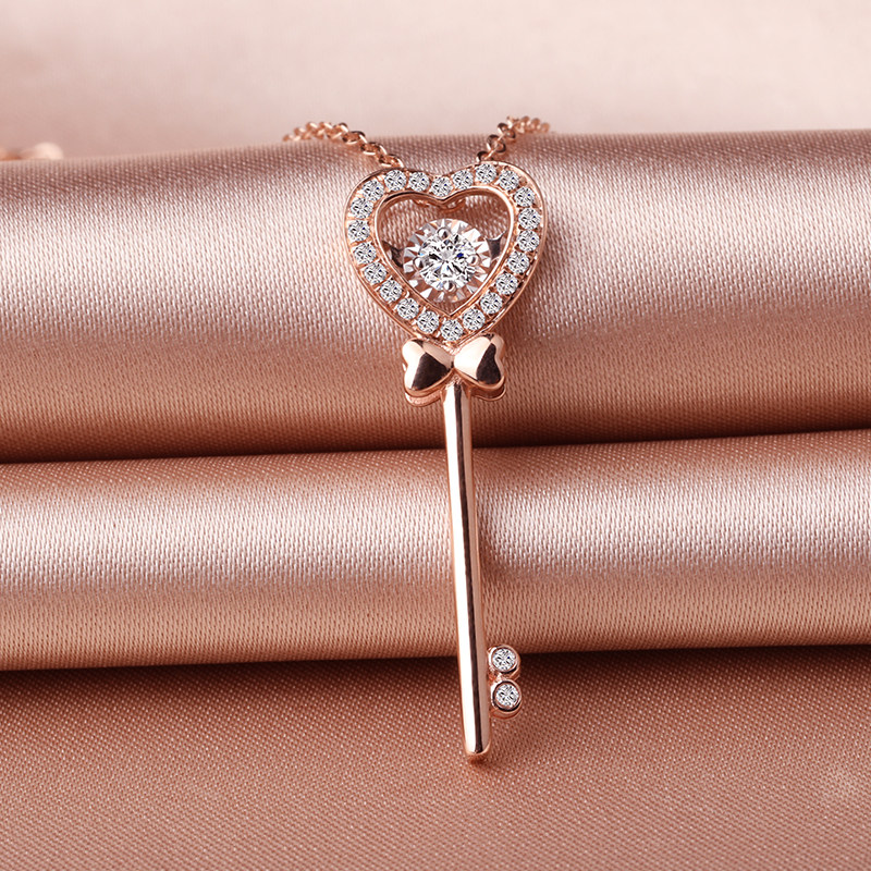 18K Gold Heart-shaped Key Diamond Necklace Necklace Rose Gold Flock Inlaid Pendant Lock Bone Chain Teenage Fashion 520 Gift