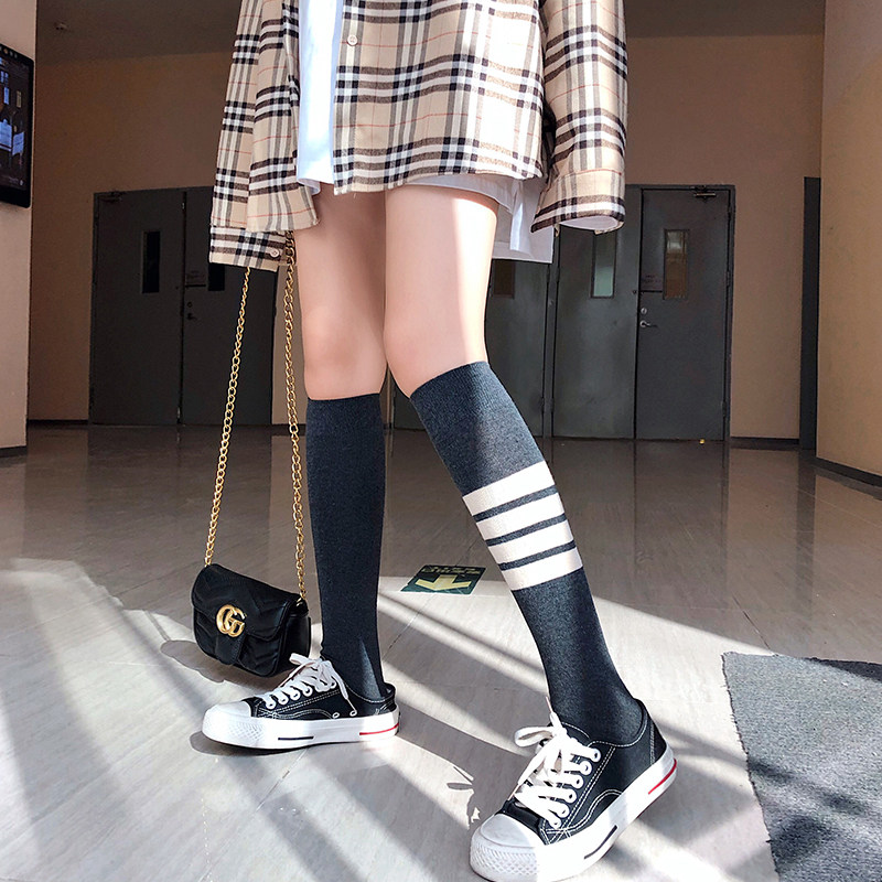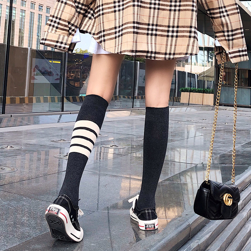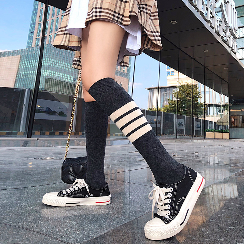 Socks Children's Long Sox 2021 Autumn Winter New Korean version Japanese Department Four track bar Stripes over knee long socks Bubble socks Chaoters