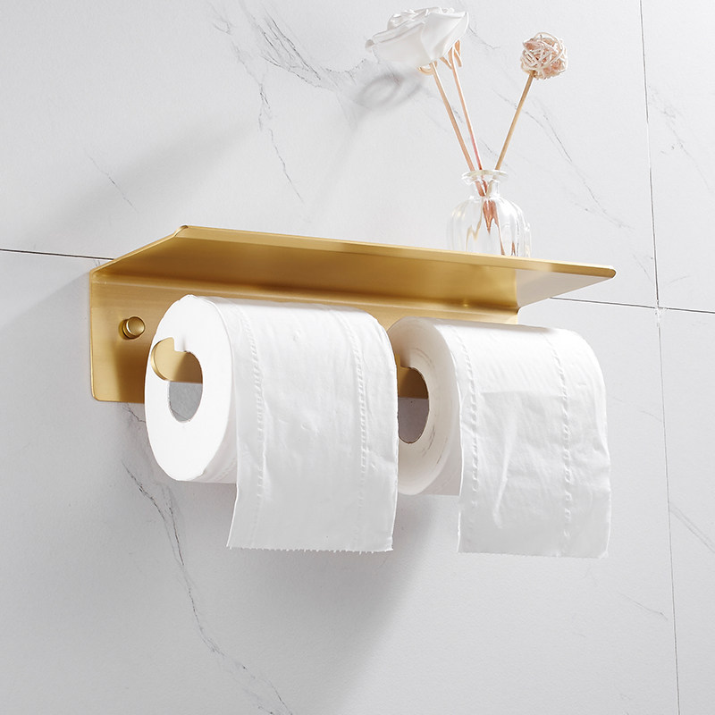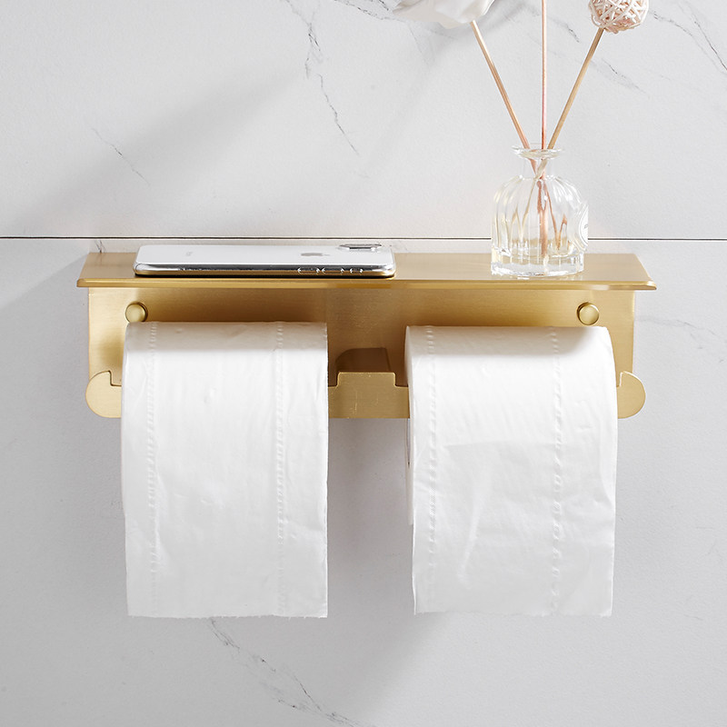 Nordic powder room double roll toilet paper rack Punch-free toilet paper Mobile phone shelf Brushed gold toilet paper toilet tissue box