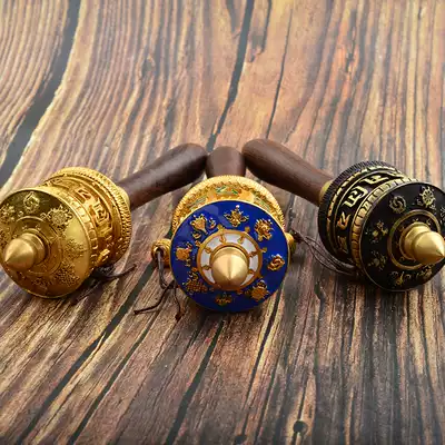 Buddhism pure copper instruments eight auspicious painted lotus flower green mother heart hand shake warp wheel