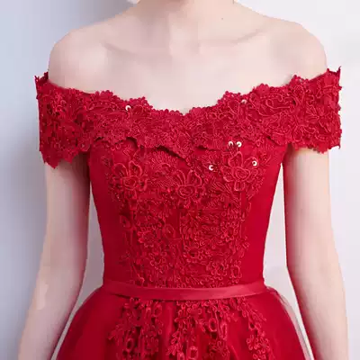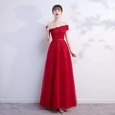 Bride toast 2020 new winter shoulder temperament engagement thin red wedding back door dress women