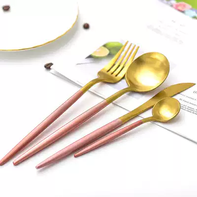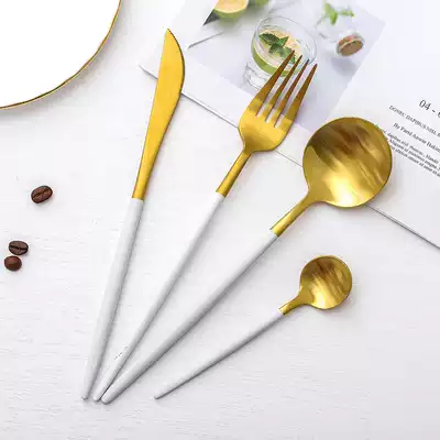 Golden knife and fork spoon four black gold knife and fork spoon four Powder Gold knife and fork spoon four white gold knife and fork spoon family of four