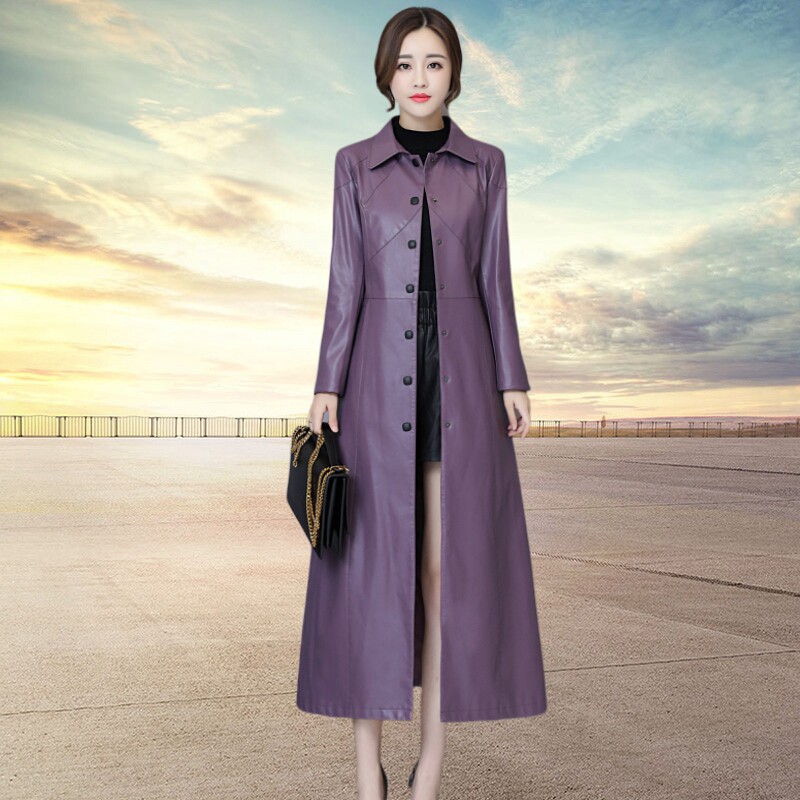 Haining leather jacket women's mid-length temperament self-cultivation 2023 autumn and winter new cotton thickened warm PU leather windbreaker jacket
