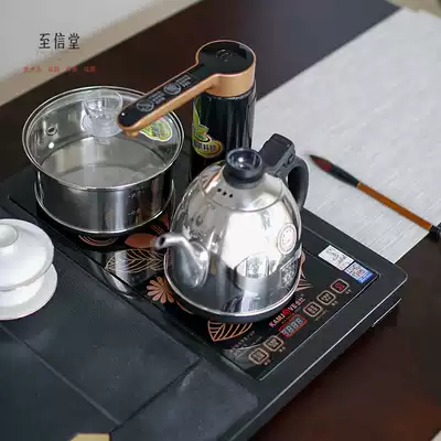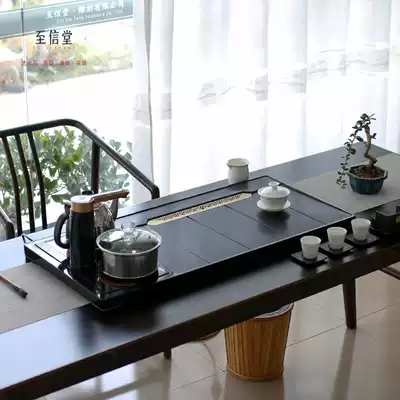 The whole piece of Wujin Stone tea tray household tea set integrated automatic drainage whole set of induction cooker large stone Tea Sea