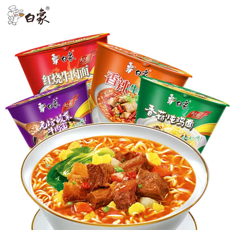 White elephant instant noodles barrel noodles Spicy sauerkraut braised beef noodles 12 barrels of mixed instant noodles whole box