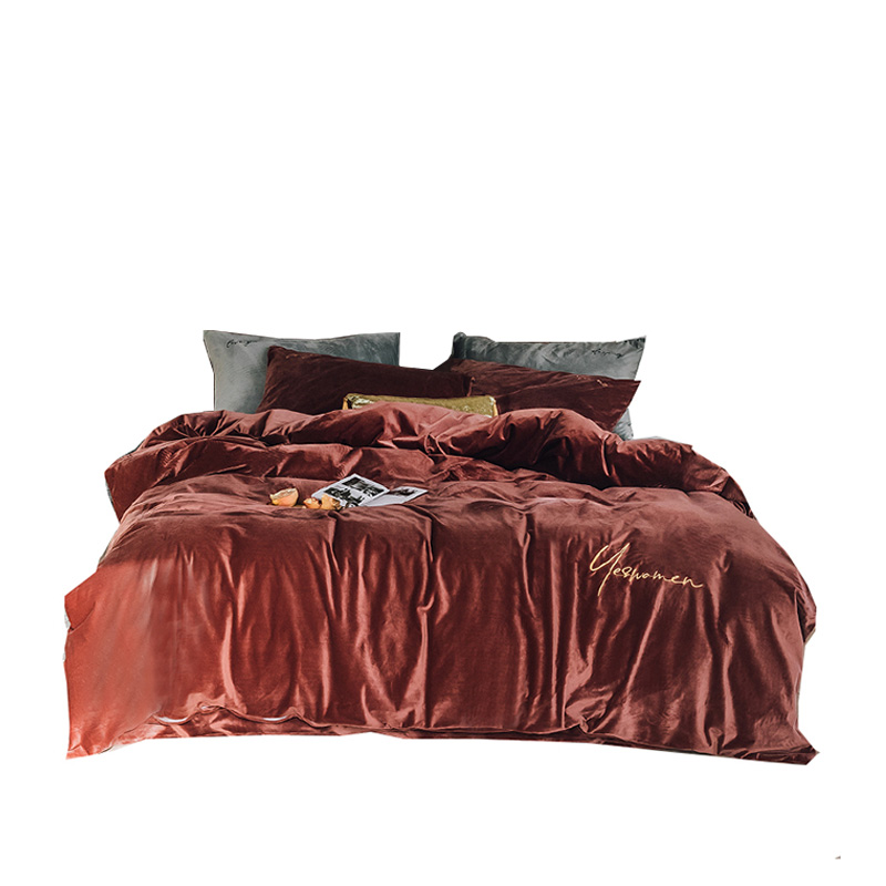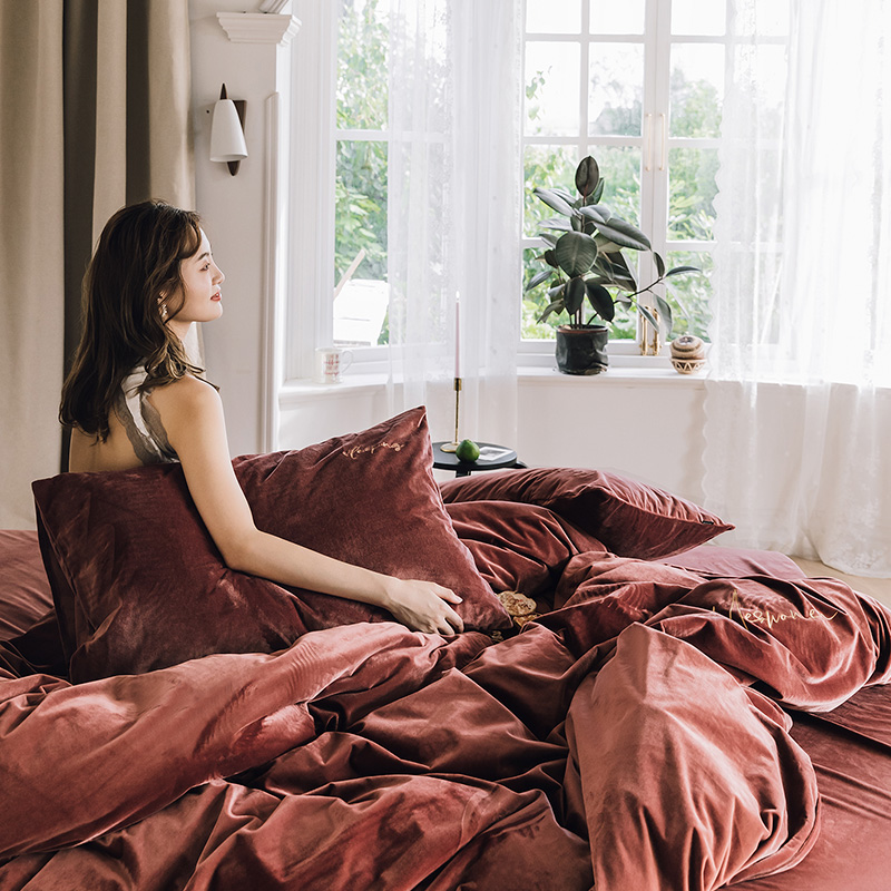 Chucyrian pint minimalist Autumn Winter Bifacial Suede Bed Pint Kit Pure Color Thick Warm Italian Suede Bed Four Pieces