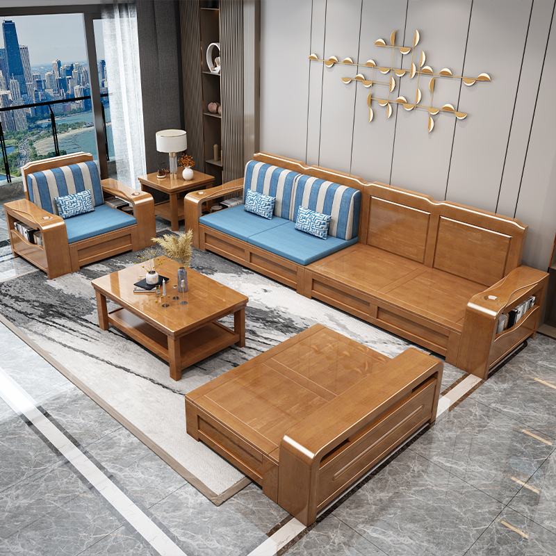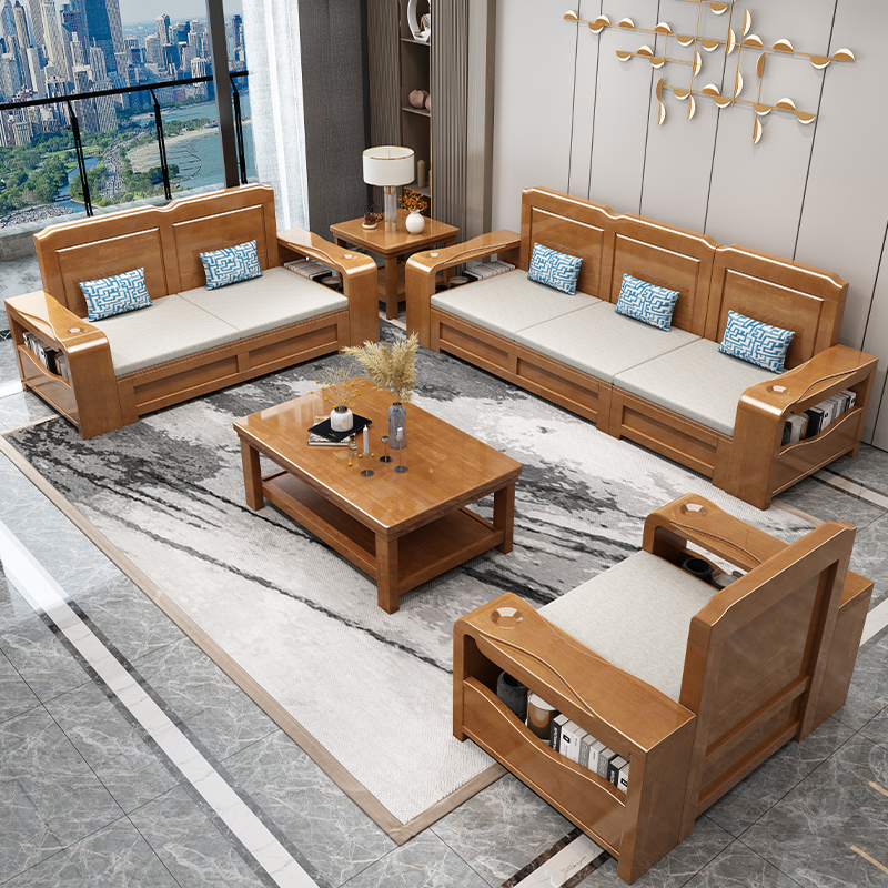 Solid wood sofa Combined modern minimalist Chinese living room Small family type winter and summer dual-use sofa Rural Economy Type of furniture-Taobao