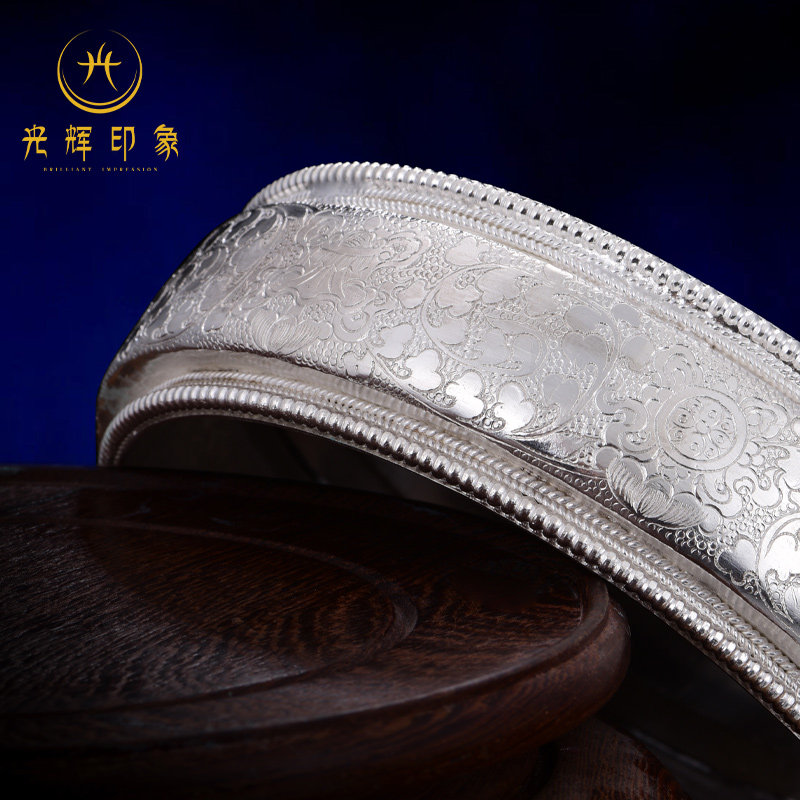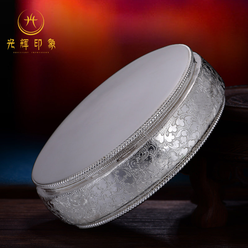 Glorious Impression Tibetan Buddhism S99 Sterling Silver Manza Pan Repair Plate Pure Handmade Convex Eight Auspicious Mancha Luo 11cm