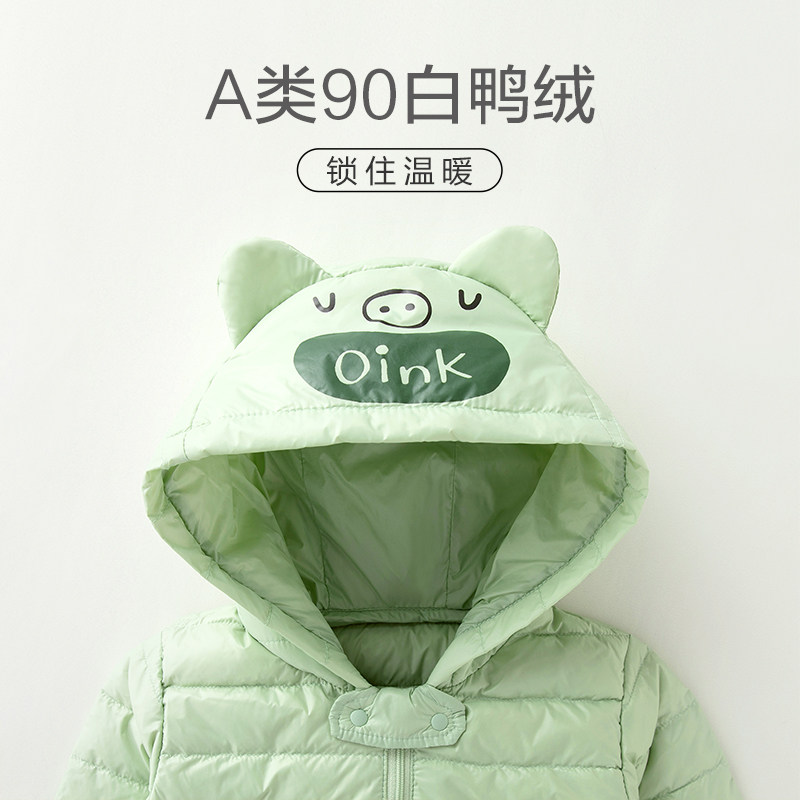 Children's down jacket male and female baby jacket 90 white duck down light and thin hooded foreign style baby warm top autumn and winter clothing