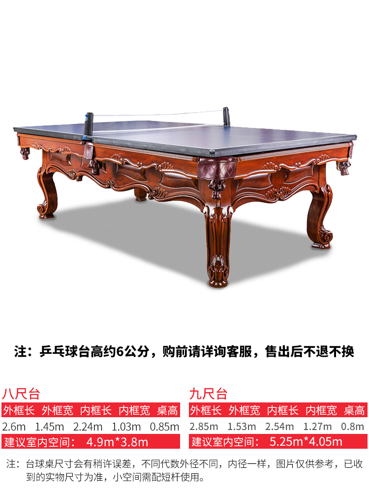 Super luxury villa home-style European carving American black eight multi-function nine-ball pool table ping pong two in one
