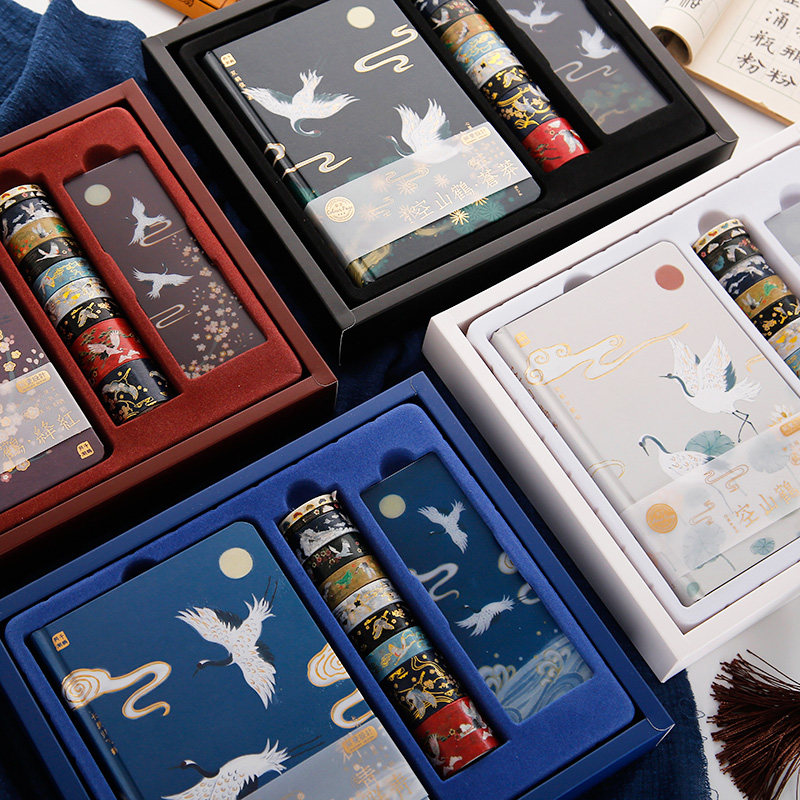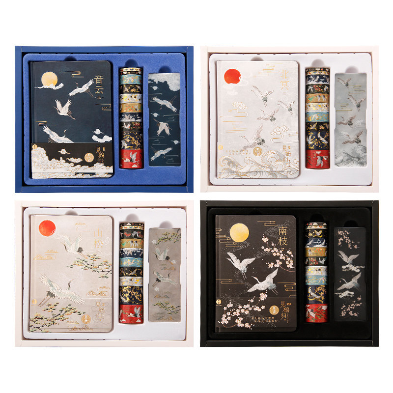 See the crane back to hand account book set retro Chinese style notebook gift box literary diary ancient style crane and paper tape notepad high-end gift custom logo