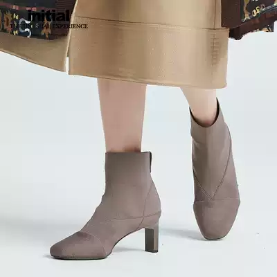 initial autumn and winter knitted boots simple high-heeled mid-tube elastic all-match women