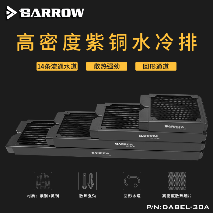 Barrow High Density Single Wave Copper Water Cooling Row 30MM Thick Water Cooling Radiator Dabel-30a 240