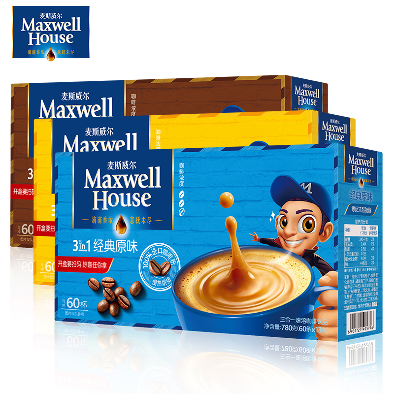 Maxwell instant coffee powder refreshing strong original milk fragrance 60 student official flagship store