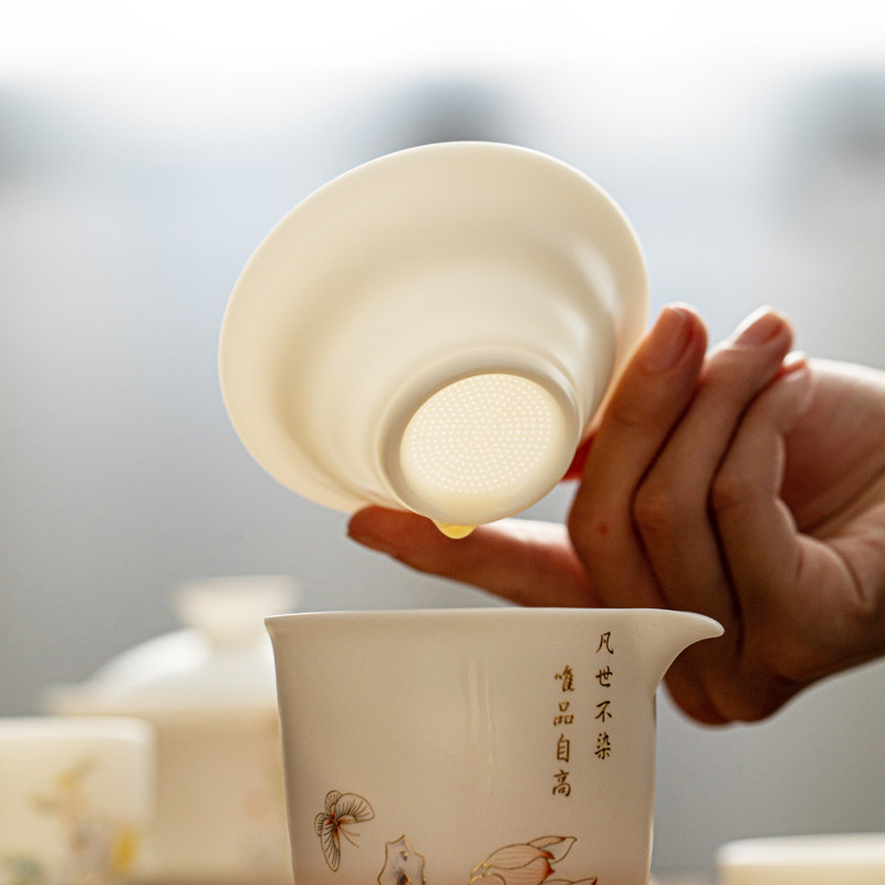 Porcelain in the Samadhi tea leaker frame white porcelain integrated perforated filter mesh ceramic tea set accessories tea funnel tea filter