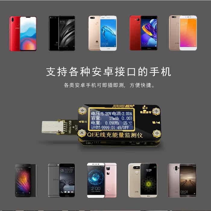 Smooth source wireless charging tester USB micro voltmeter Android phone connector OPPO4A flash charge-Taobao