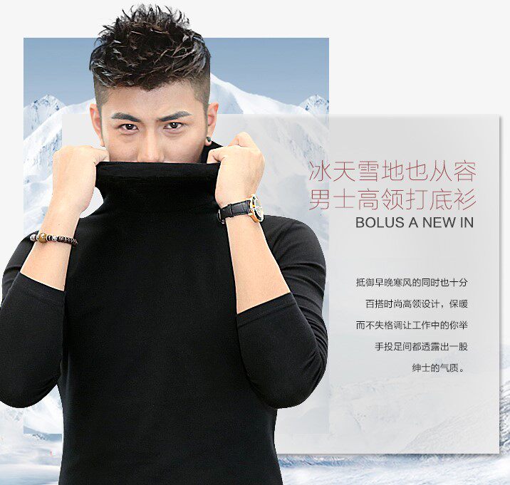 Winter tide man 200 catty plus mast size plus suede thickened with high collar T-shirt pure color elastic warm and undershirt