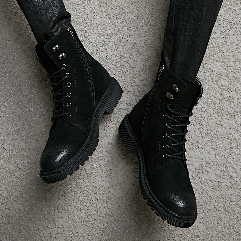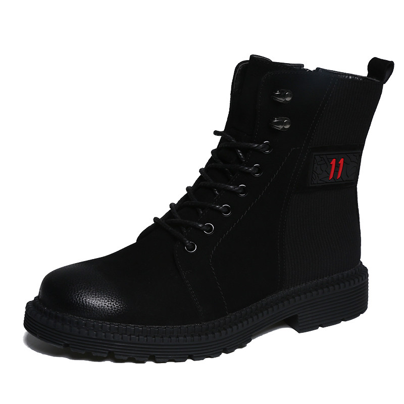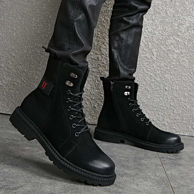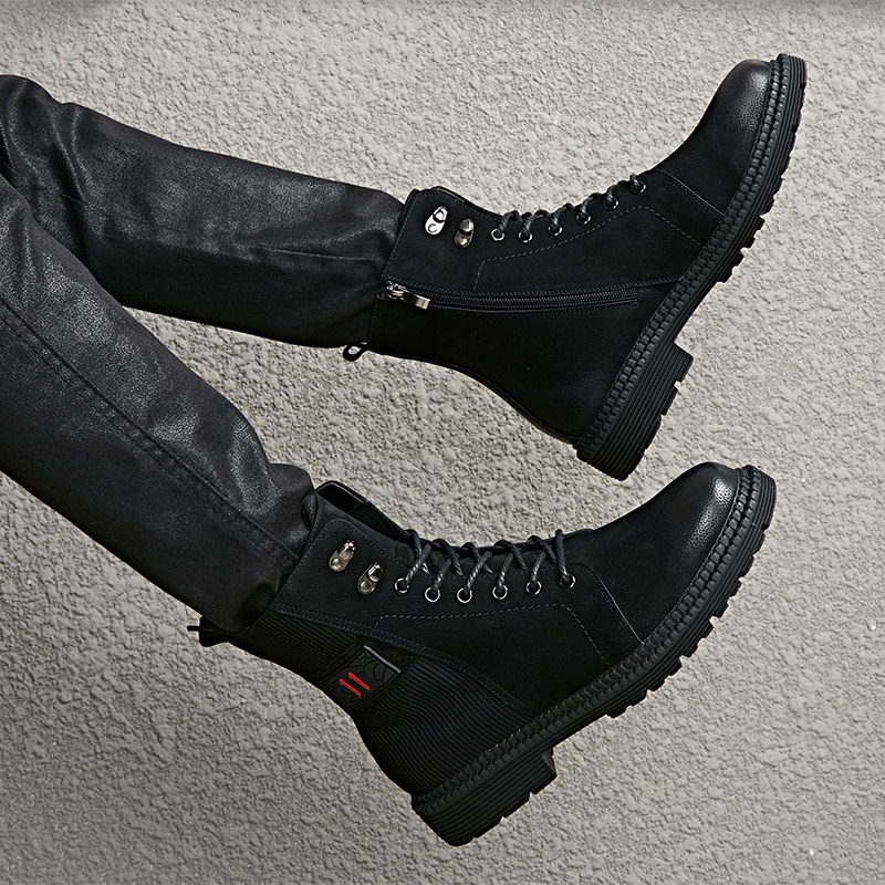 Spring men's boots Korean version trendy 100 hitch mid-cylinder Martin boots Inn leather leather shoes men's heightening high cylinder breathable tooling boots man