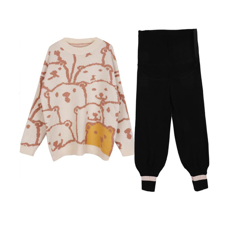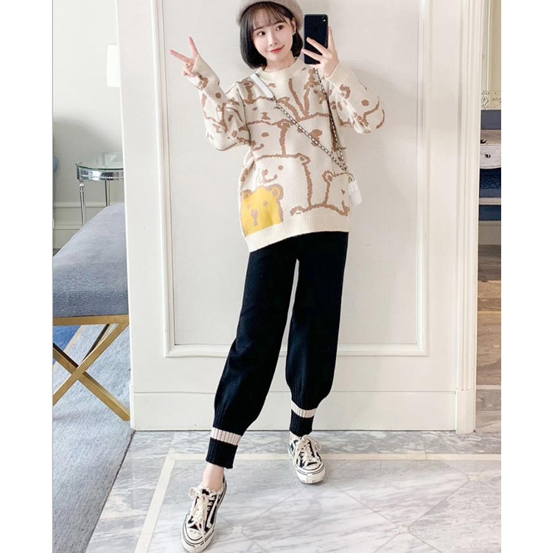 Small Bear Blouse Blouse Black Pants Thickened Suit