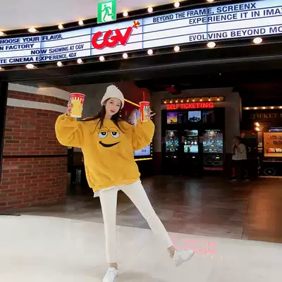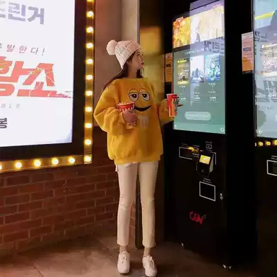 2021 New loose oversize cartoon round neck plus velvet thick short lamb plush sweater women autumn and winter