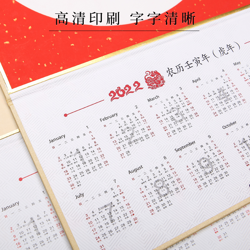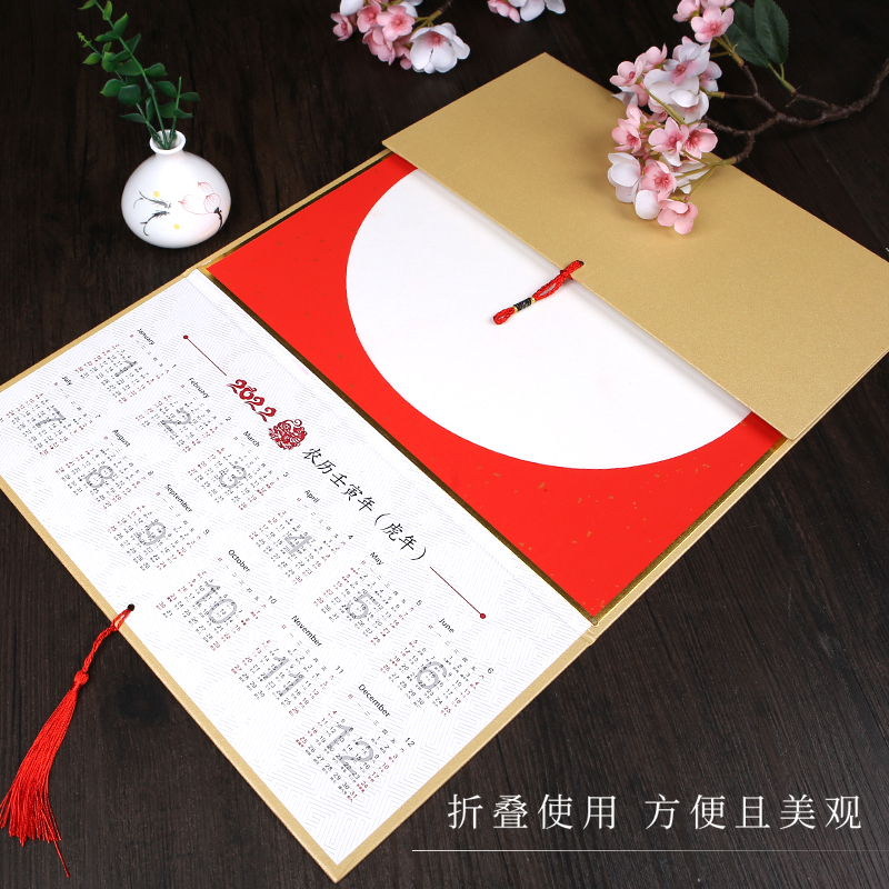 Jiangzuo 2022 tiger year blank Xuan paper hanging calendar hanging shaft handwriting folding and stacking hard card wax dyed millions of years red sprinkle gold fu character paper half raw cooked brush calligraphy works special country painting paper jam free of mounting