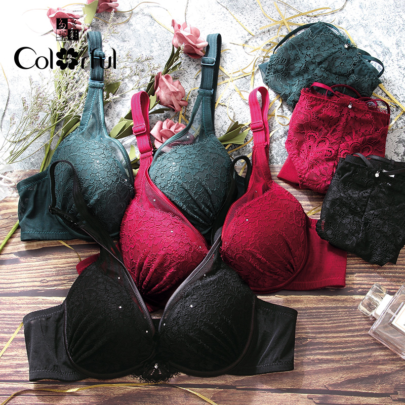 Colorful multi-coloured lingerie female sexy lace small cuddly soft steel ring slim-back bra C6845