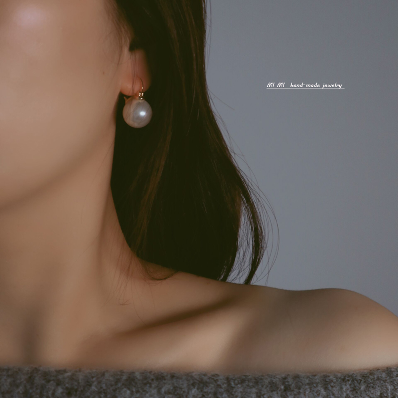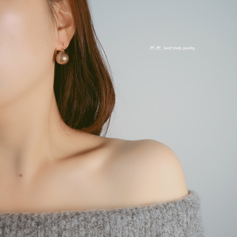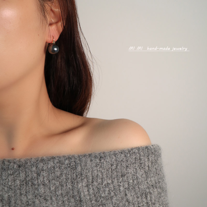 MIMI small lifting pot earrings female small fragrant wind ear needle Air type champagne ear buckle dark gray black big pearl earring