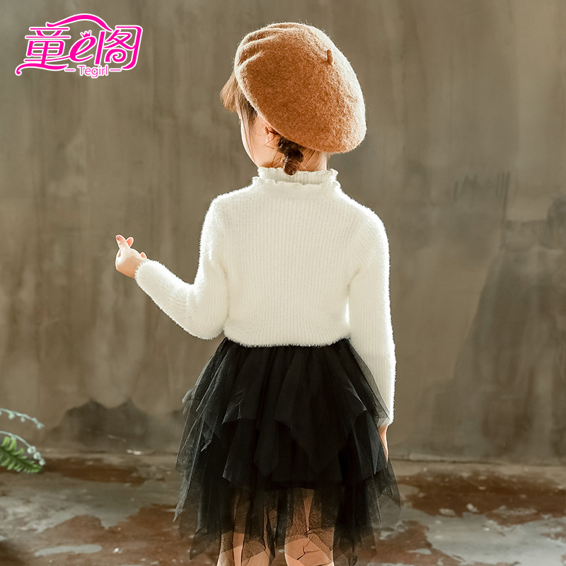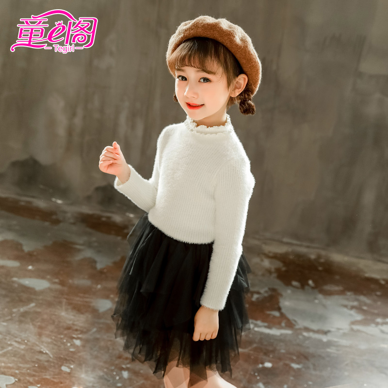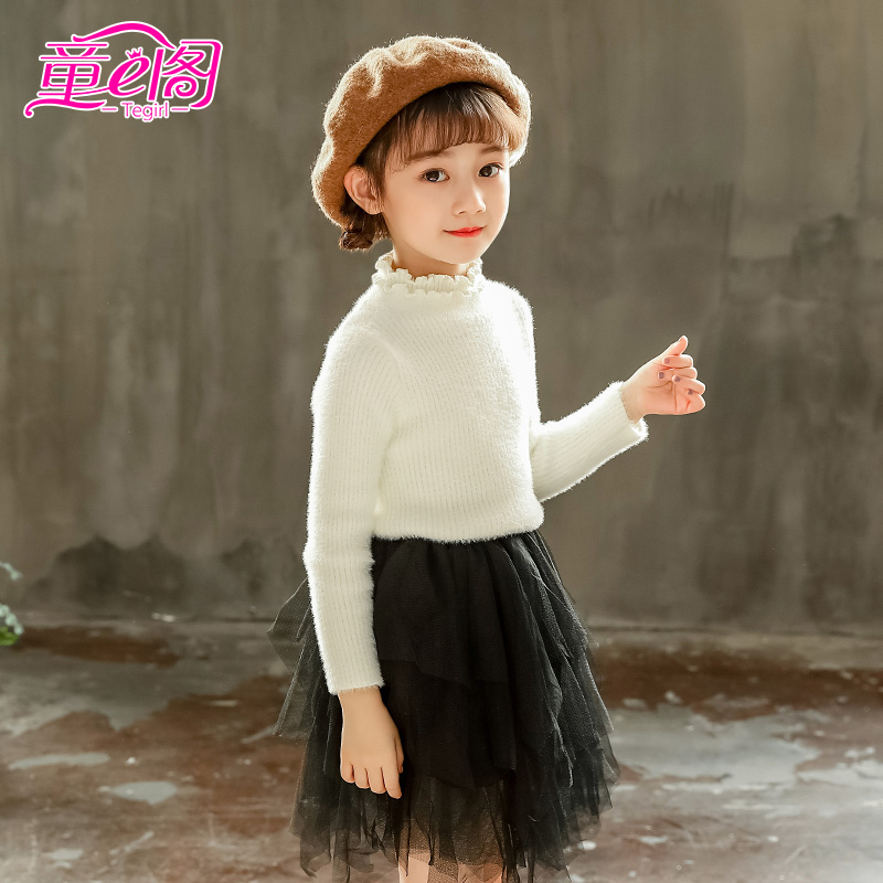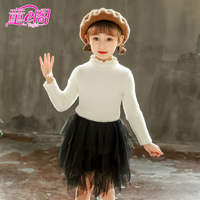 Girls semi-high neck imitation mink fleece sweater thickened warm autumn and winter solid color bottom line shirt children's round neck knit