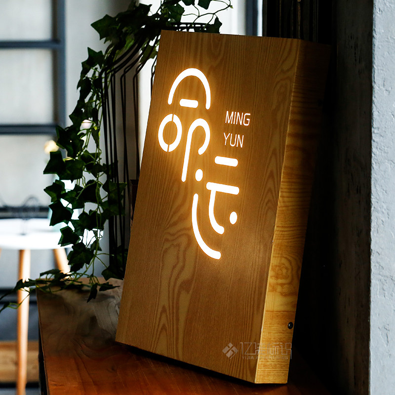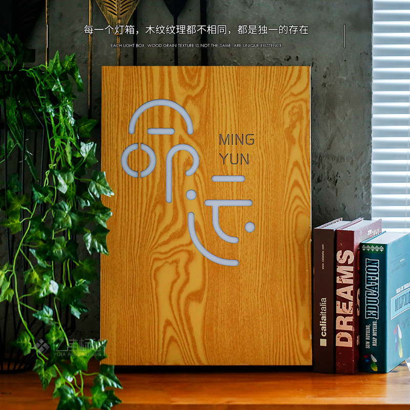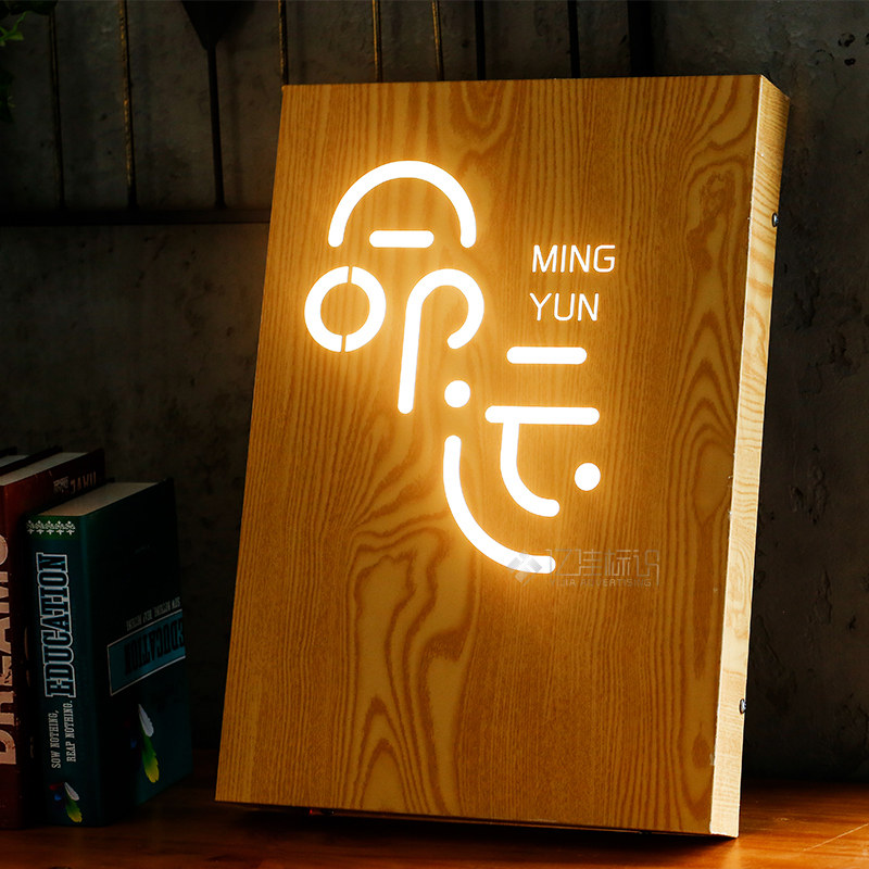 Advertising custom signboard door design luminous character door head wood grain design stainless steel back luminous light box Billboard