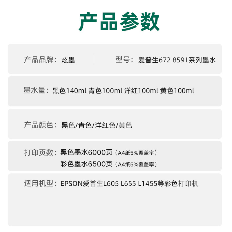Suitable for EPSON L605 L655 L1455 printer ink 859 black 672 color L101 L111 L353 four colors T6721 T67