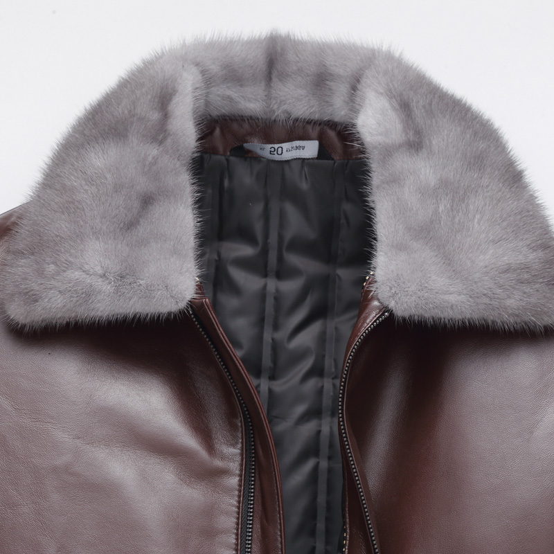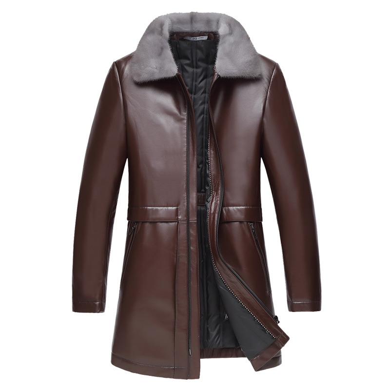 Large size genuine leather men's down jacket inner bile mid-length version plus fertilizer to increase fat middle-aged mink fur collar fur