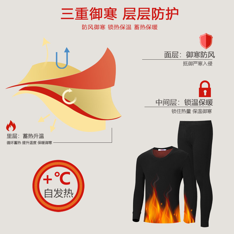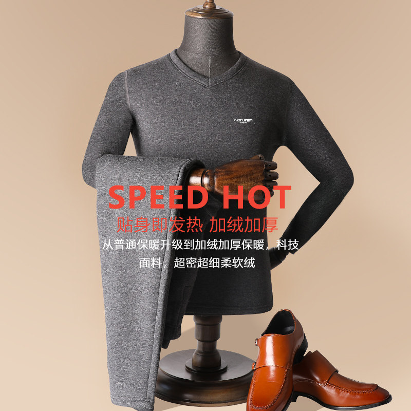 Nanjiren Men's Thermal Underwear Men's Thickening and Fleece Suit Winter Cold-proof Youth Cotton Sweater Long Clothes and Long Trousers Women